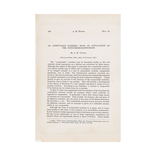 Alan Turing's 'On Computable Numbers' Matte Poster