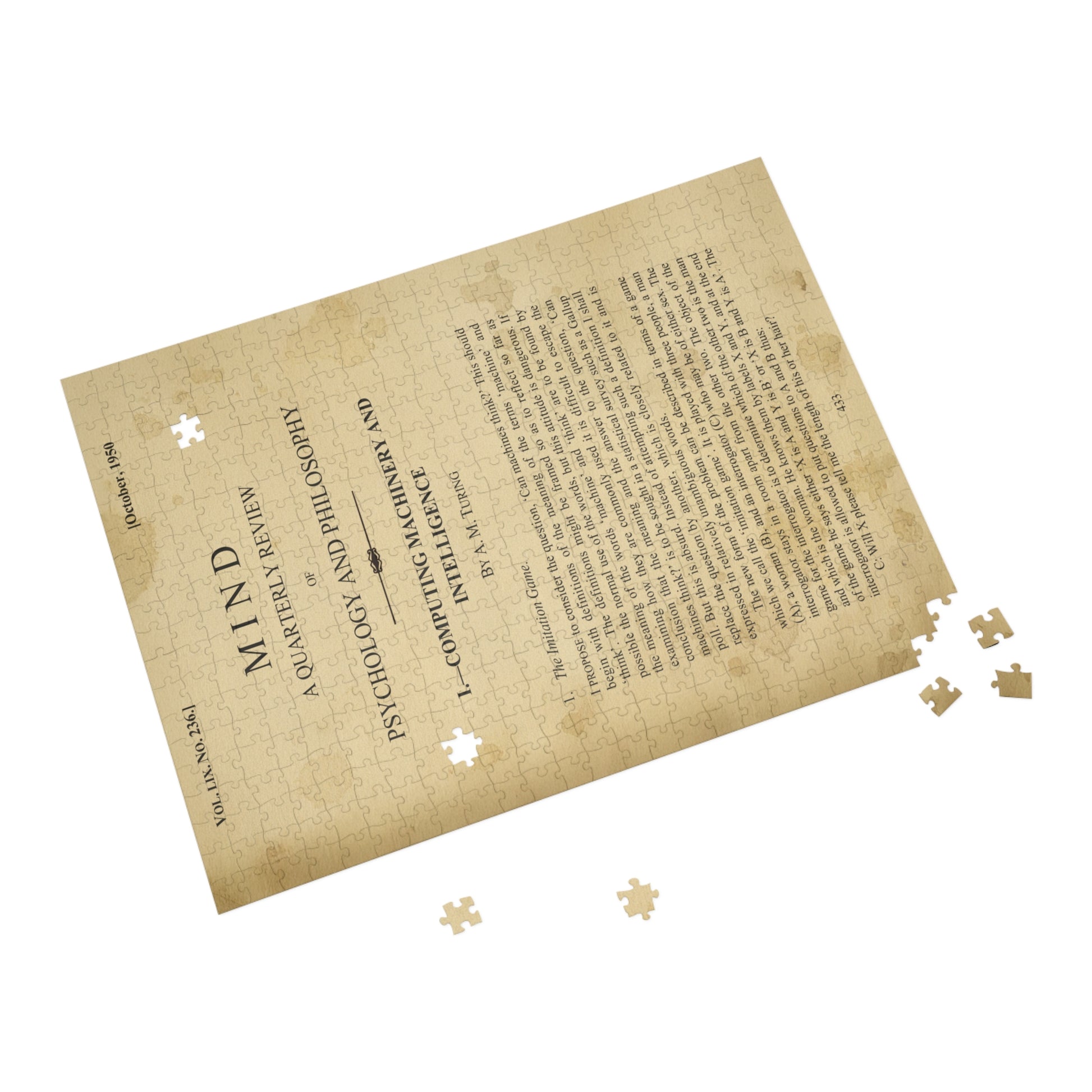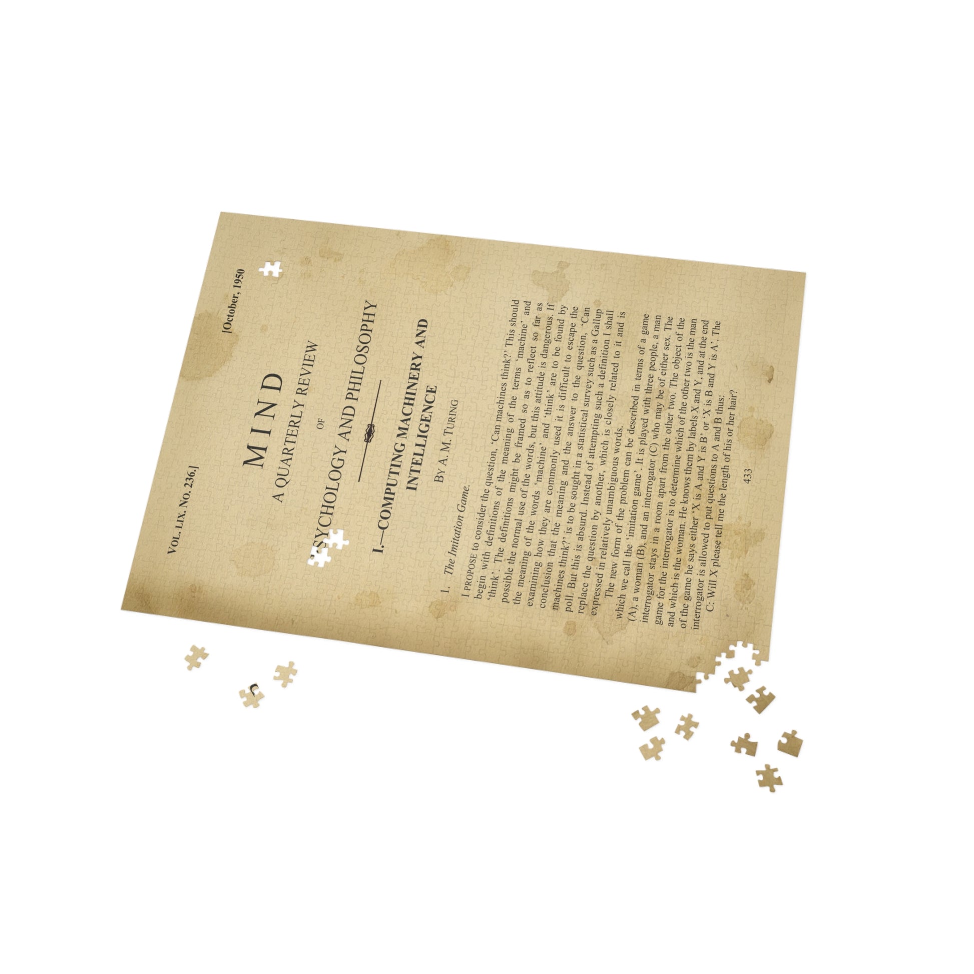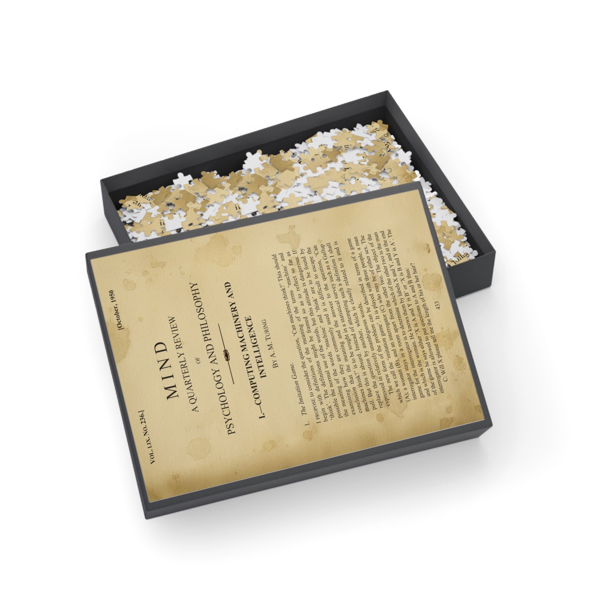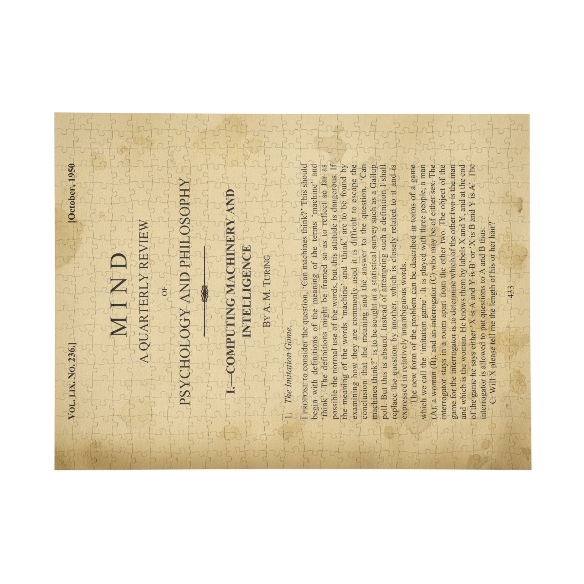 Challenge your mind with a piece of computing history! This premium jigsaw puzzle, available in either 500 or 1000 pieces, features a reproduction of the title page of Alan Turing's groundbreaking paper 'Computing Machinery and Intelligence.' This paper was the first to seriously and objectively consider the question, 'can machines think?' and gave birth to the field now called Artificial Intelligence. The paper triggered a huge amount of debate which still continues today. One of the objections to Turing's claim that machines are theoretically capable of 'originality' or 'surprise' is called the 'Lady Lovelace' objection and references Ada Lovelace who wrote in 1843 that,