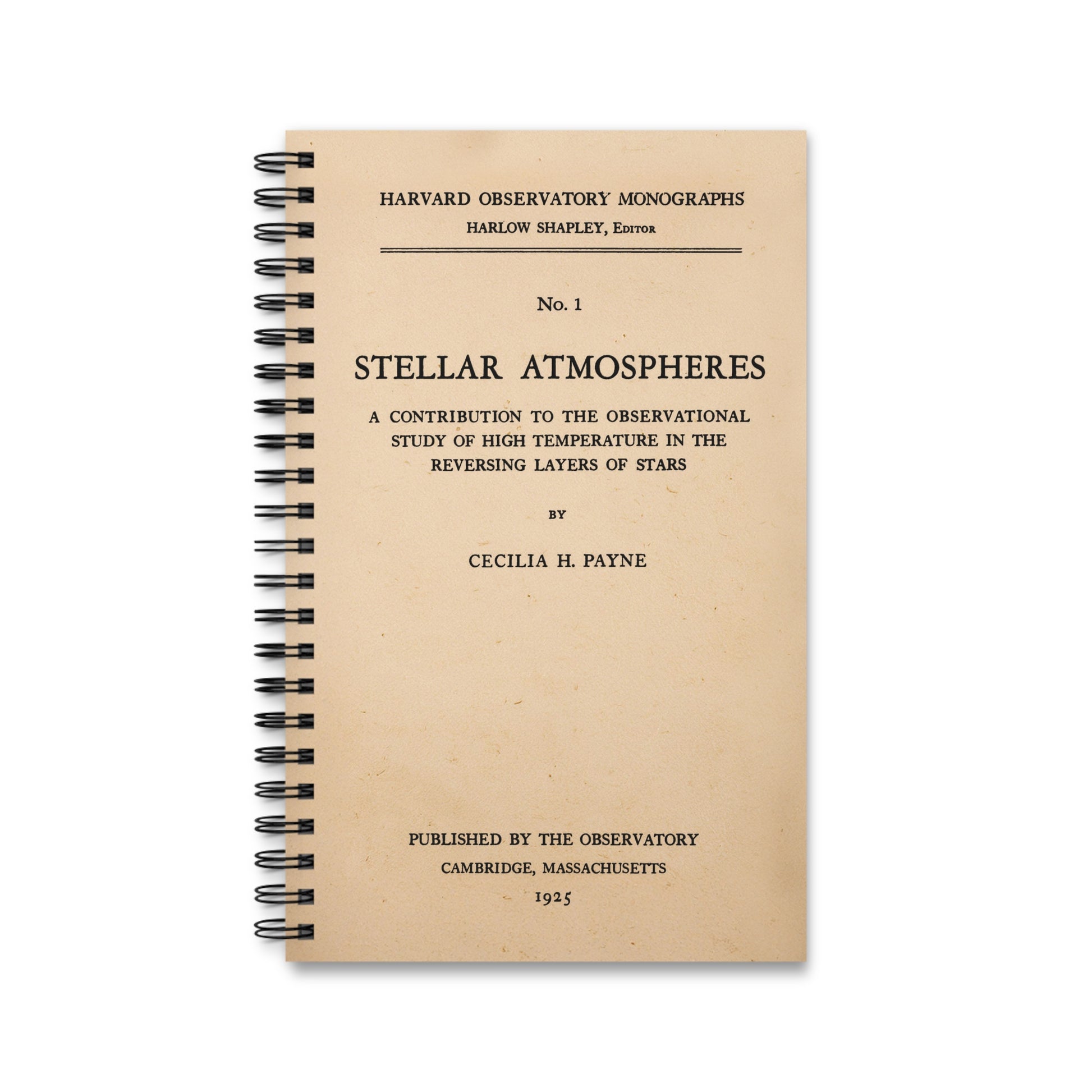 Featuring the title page of Cecilia Payne-Gaposchkin's groundbreaking 1925 PhD thesis, 'Stellar Atmospheres,' this journal is a tribute to her pioneering work that revolutionized our understanding of the universe. Payne's discoveries revealed the true composition of stars, challenging conventional wisdom and paving the way for modern astrophysics. Carry her brilliance with you as you jot down your own thoughts, ideas, and discoveries.