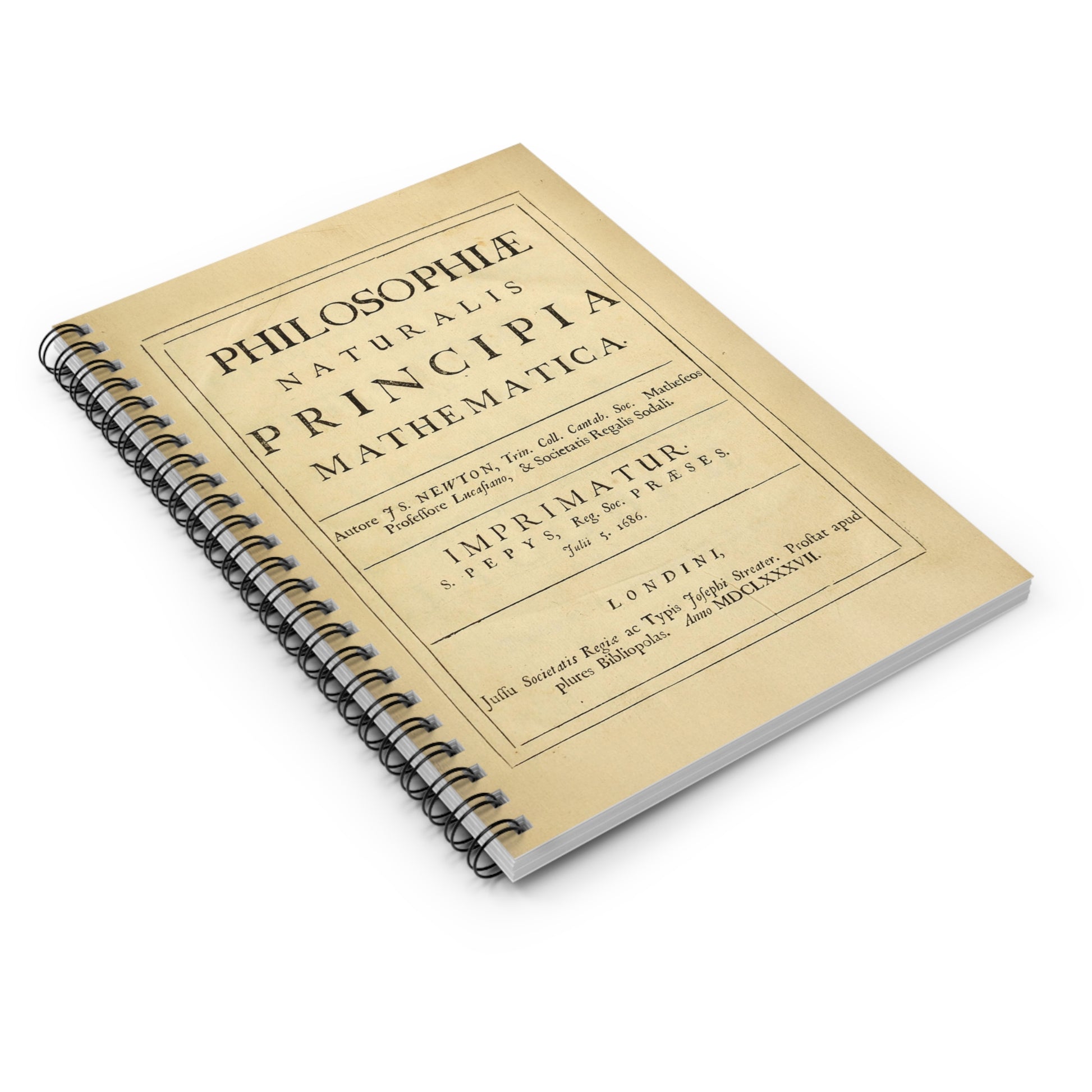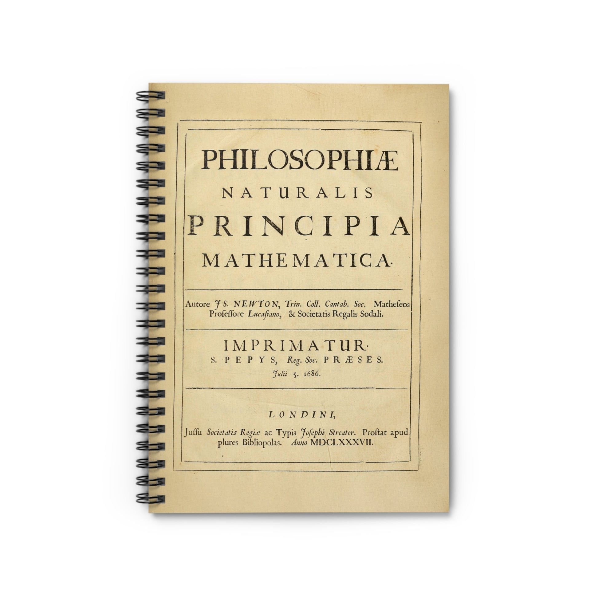 Capture your thoughts and ideas in style with this unique spiral notebook, featuring the title page of the book that invented modern science: Newton's Principia Mathematica.