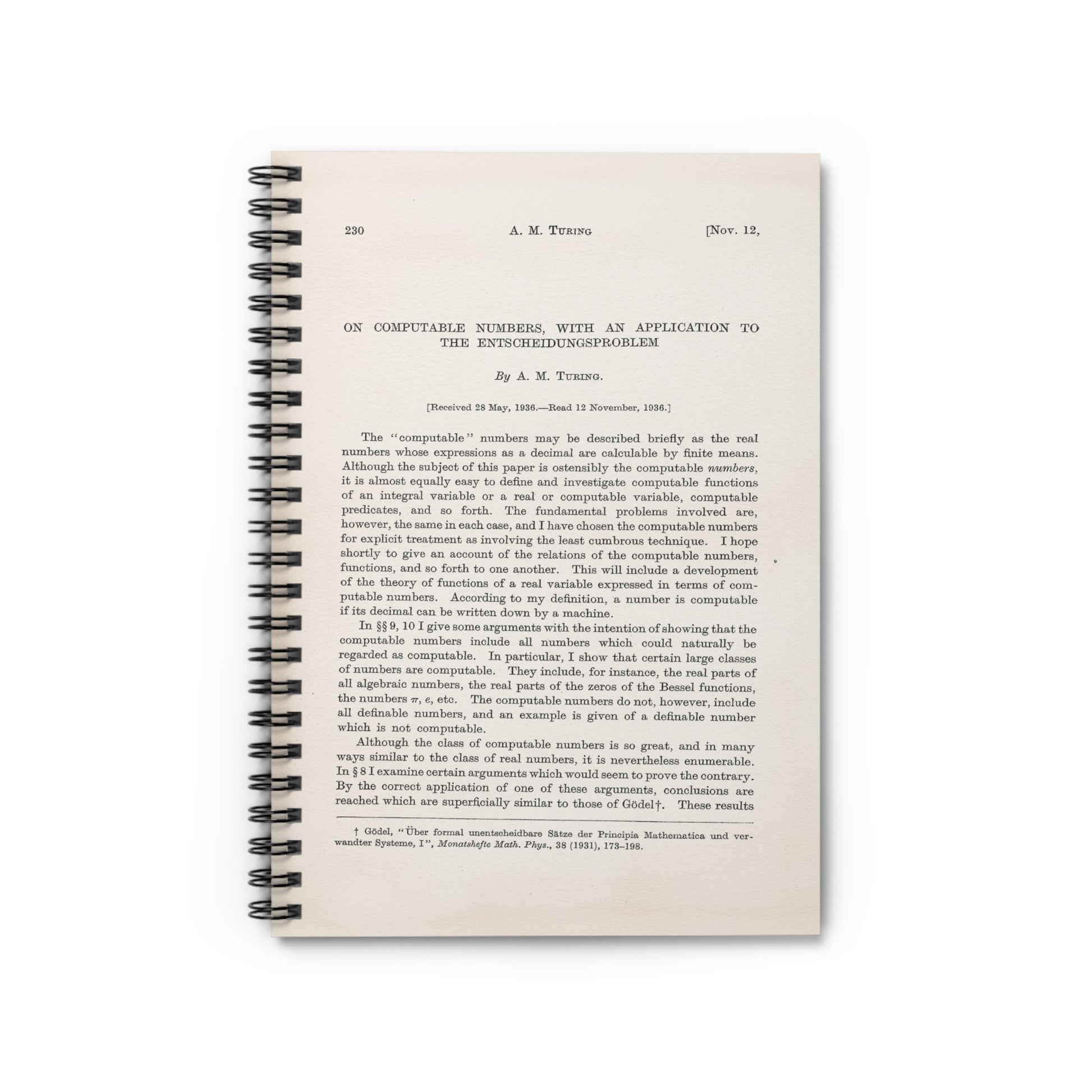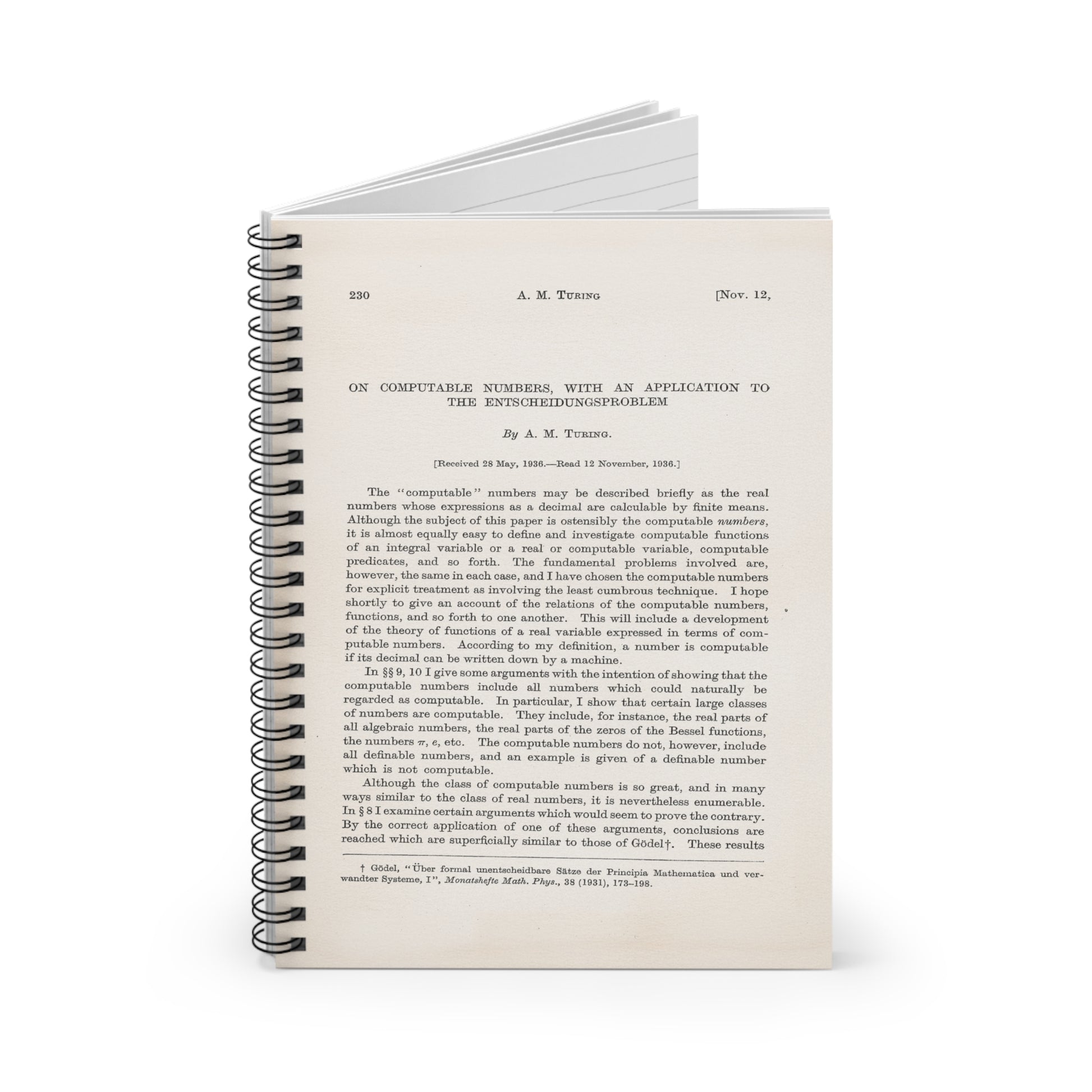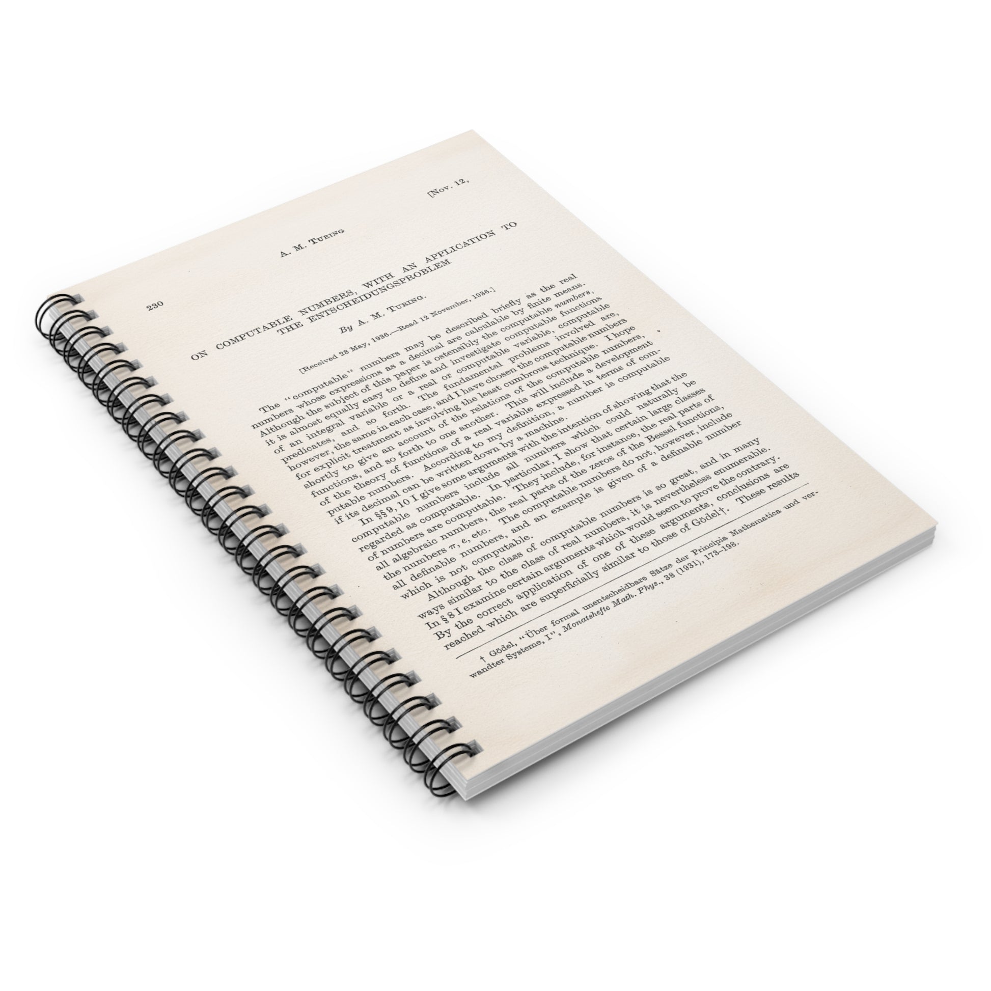 Turing's On Computable Numbers Spiral Notebook
